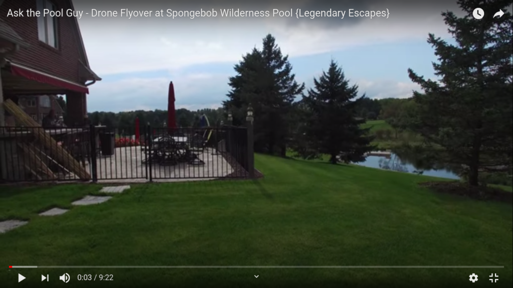 Watch this drone flyover video of the Spongebob Wilderness Pool. See the pool up-close and the beautiful property that it’s sitting on!