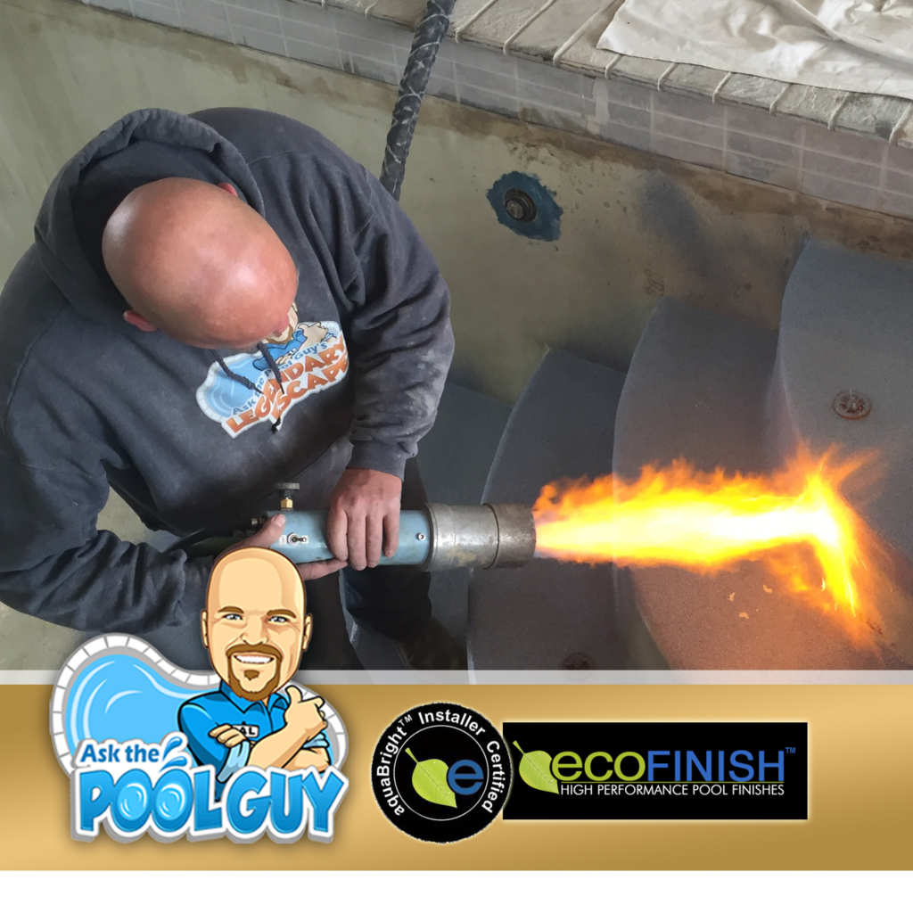 The ecoFinish products are thermal plastic coatings which are applied pneumatically, heated as it comes through the application gun melted, and flashes onto the pool surface. It dries almost instantly and creates a smooth and long lasting finish which is waterproof, impervious to chipping, scaling and staining.