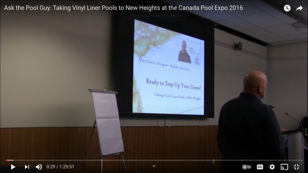 Watch Al of Ask the Pool Guy present: Taking Vinyl Liner Pools to New Heights – at the Canada Pool Expo 2016!