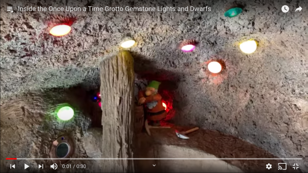 Here we get a tour inside the Once Upon a Time grotto with all of the gemstone lights and dwarfs.