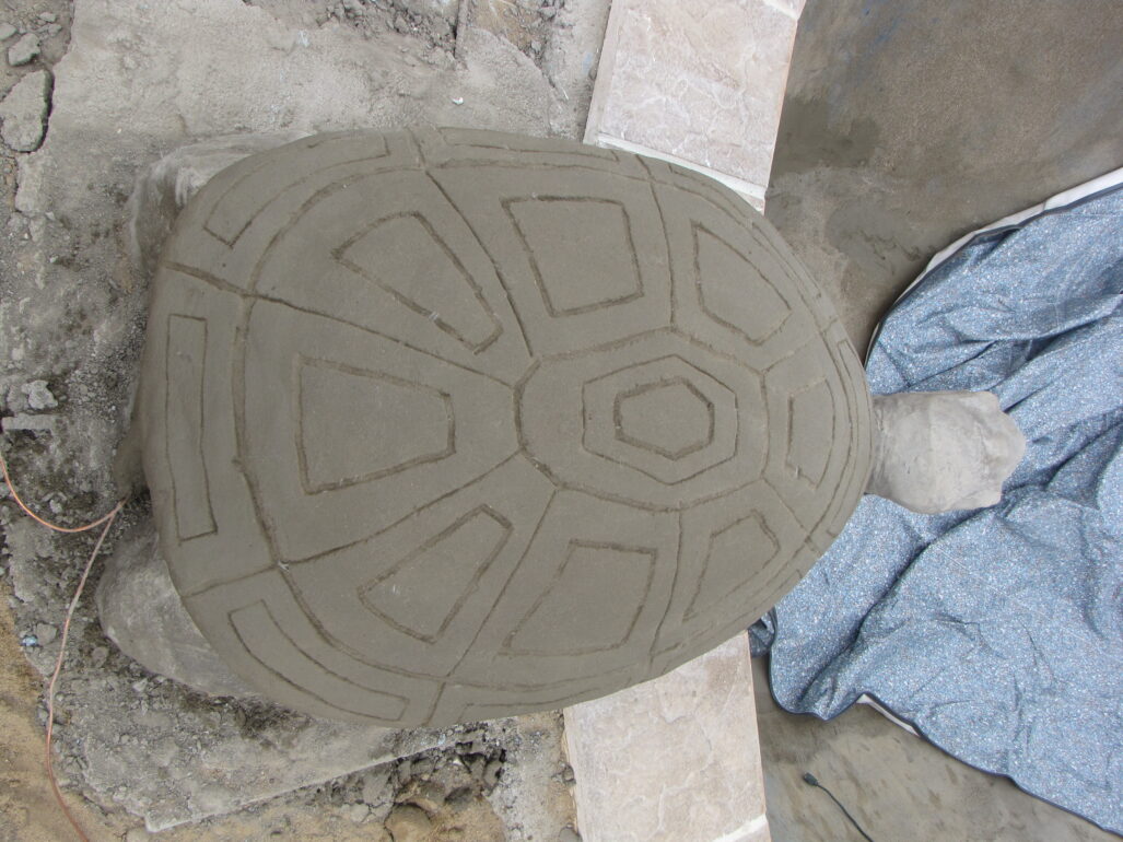 Each turtle is custom sculpted by hand, just like each and every accent rock, boulder, waterfall, grotto, or water feature. Basically, we drop a pile of concrete onto the spot where we want the turtle to be. Then begins the shaping and sculpting process. These relatively small turtles look like they’d be simple enough to make and send to someone else’s pool. But these are not your average stone figurines. Because of the unique way we sculpt them, these little creations are incredibly heavy – at a thousand pounds or more…so enjoy our turtles, and if you are one of our Legendary Escapes owners, we’re happy to make sure you get your very own turtle with it’s own personality!