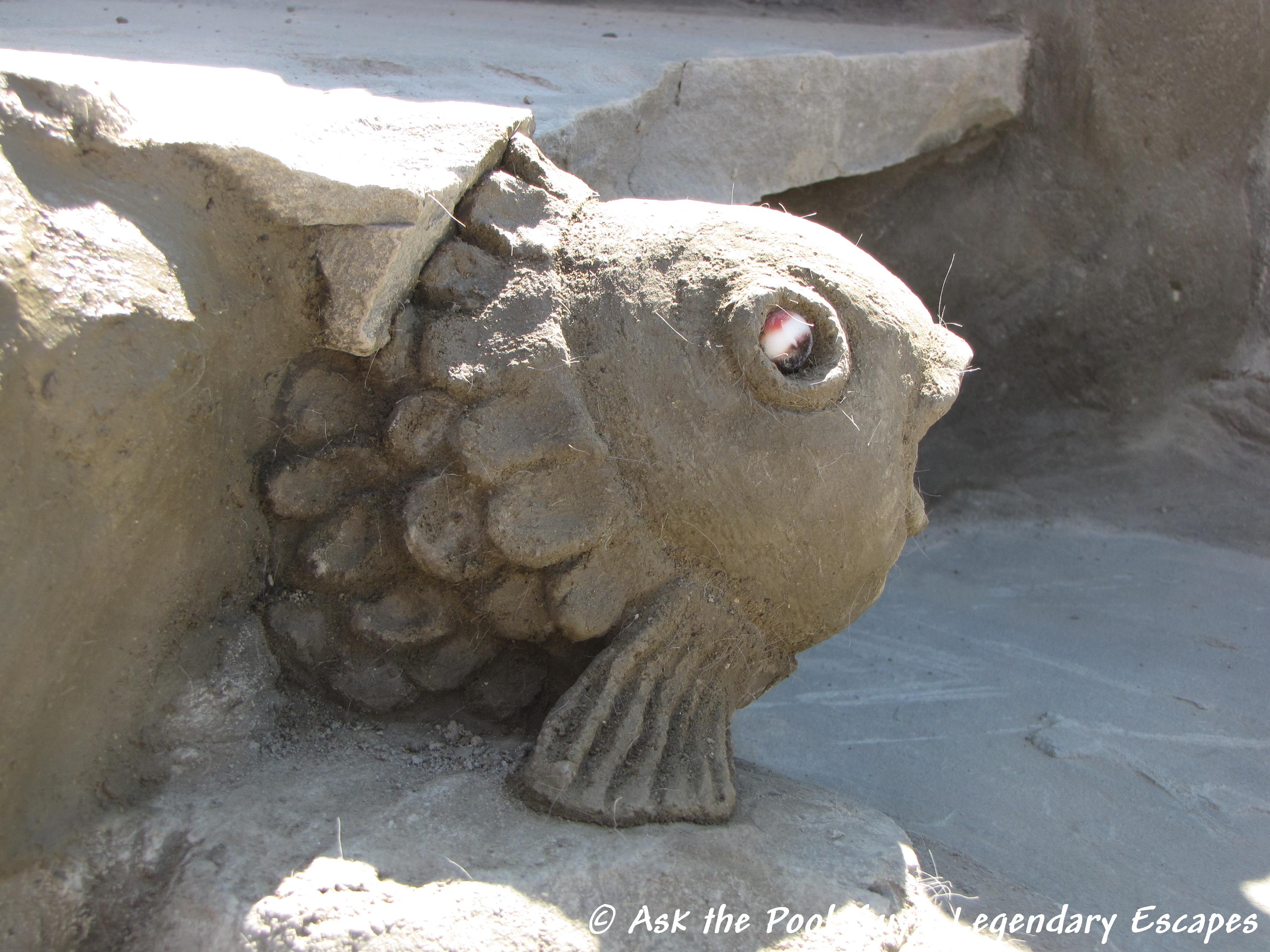 I love sculpting and the customers love koi, Al knows both of this, so today he informed me that he wanted a koi fish peeking out from between the tiers we were working on before the end of the day. Not only would the koi be peeking, but it would also be plumbed to shoot water, adding to the splashing dance. I wasn’t to worry, though, I didn’t need to carve the whole fish, just the head, a small head; a little surprise for the customer to find. Not quite sure how to pull this off, I asked for a picture reference, which Al provided. Then I thought marble eyes might be nice, so off Al went to track down two matching marbles. His mission completed, I completed mine, and watching the customer find it after coming home made my day, and I’m sure it made Al’s, because together, along with Rick’s awesome cement mix, we’d exceeded the customer’s expectations, and sent them off on their trip to Cedar Point wishing they could stay home swimming in their own pool.