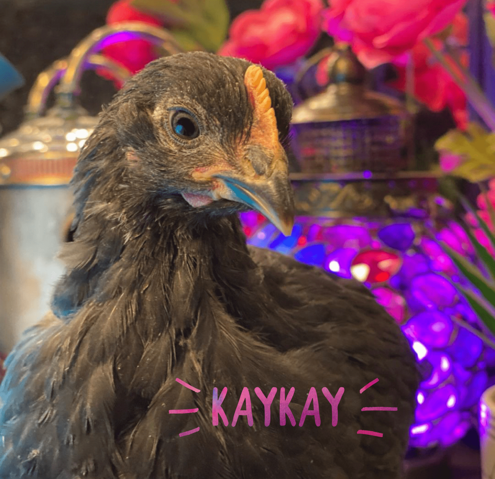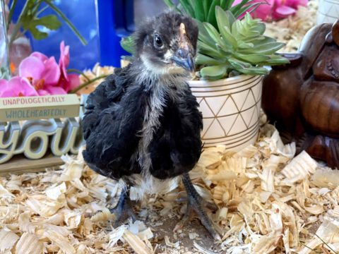 Named after Melba’s sister and Al’s favorite aunt, meet KayKay! She is an Asian Black chick with a zen personality and super soft feathers.