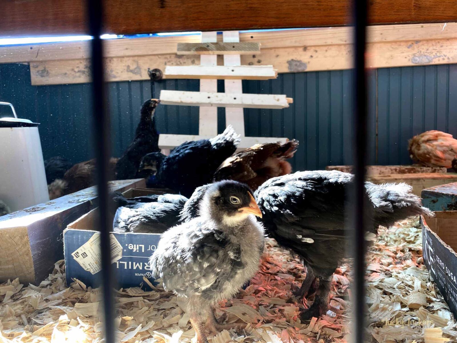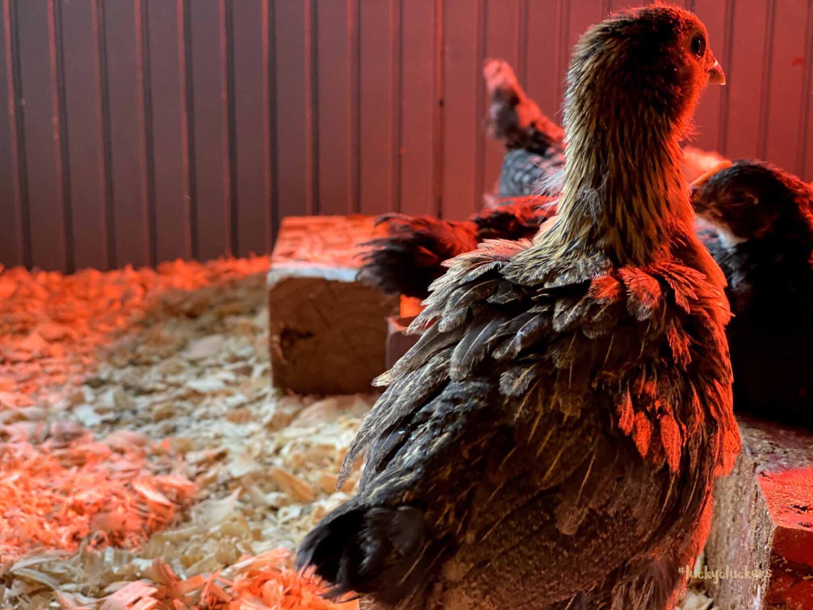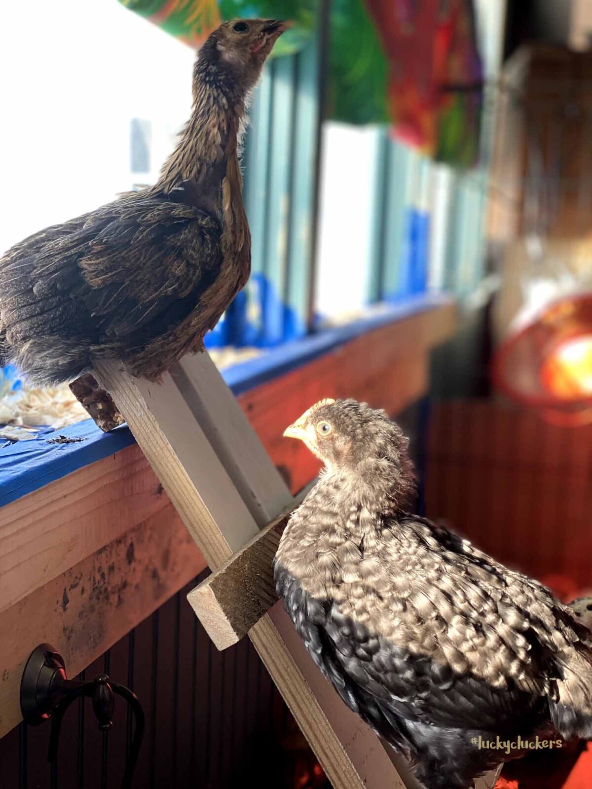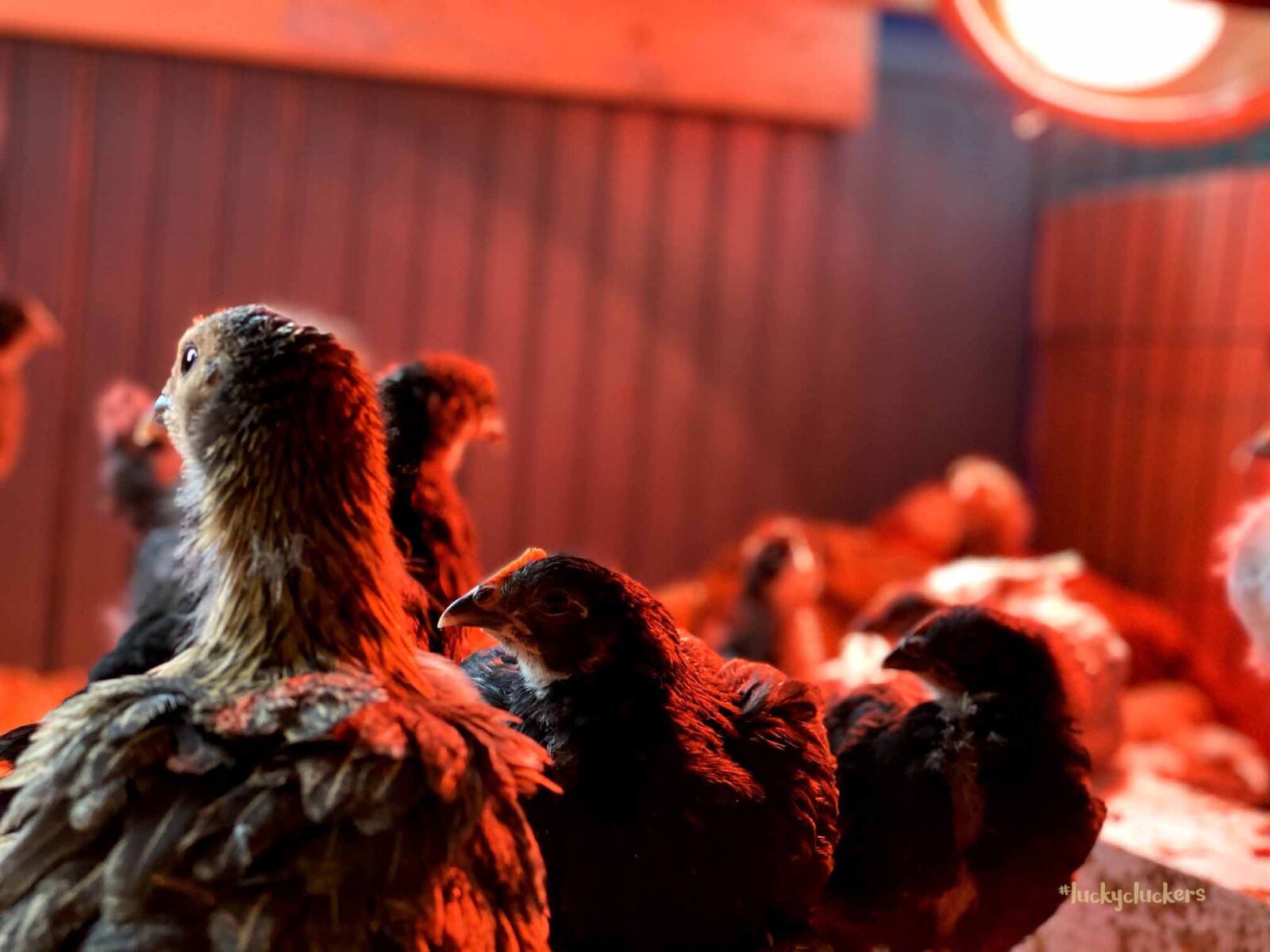 We’ve kept the red light on to keep them warm. They are now on the floor indoors, it can get a bit of cold air especially when the door opens. Our outside temps are in the teens and twenties this week, so even though they are old enough to start weaning off the light, it’s beneficial to have it there.