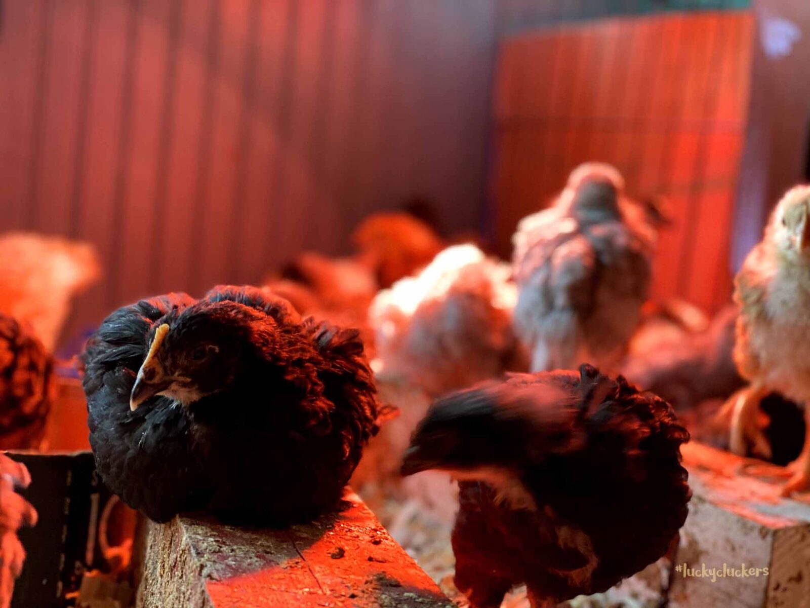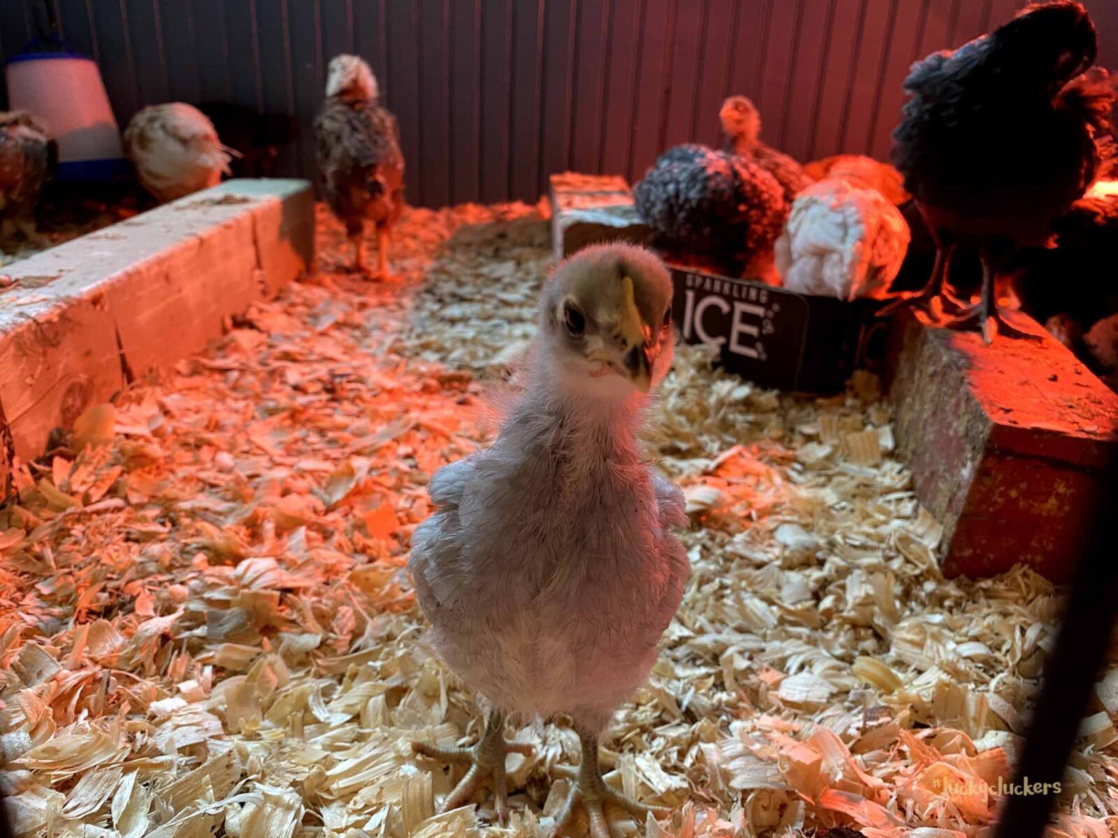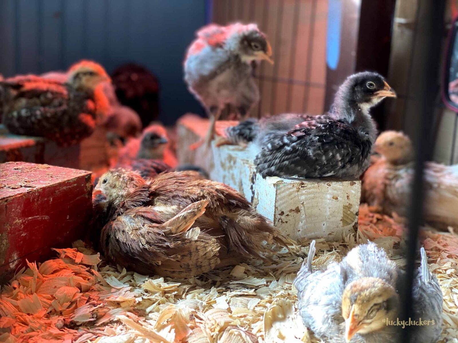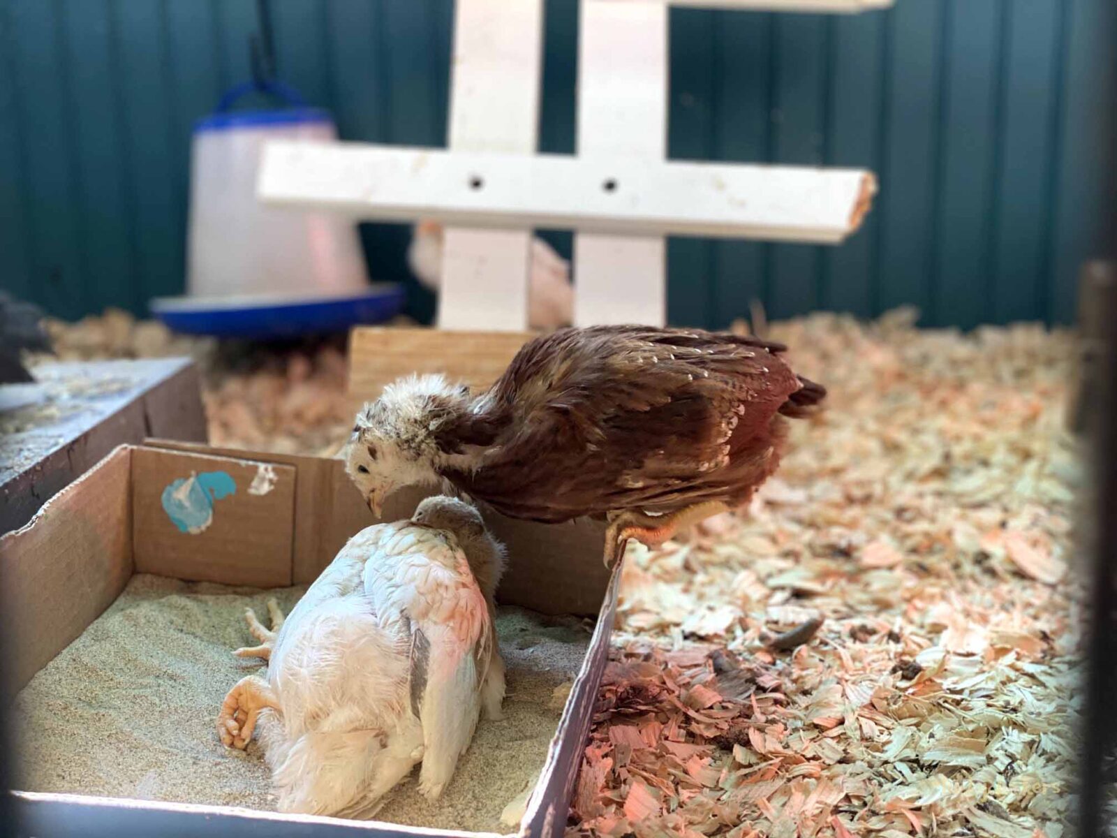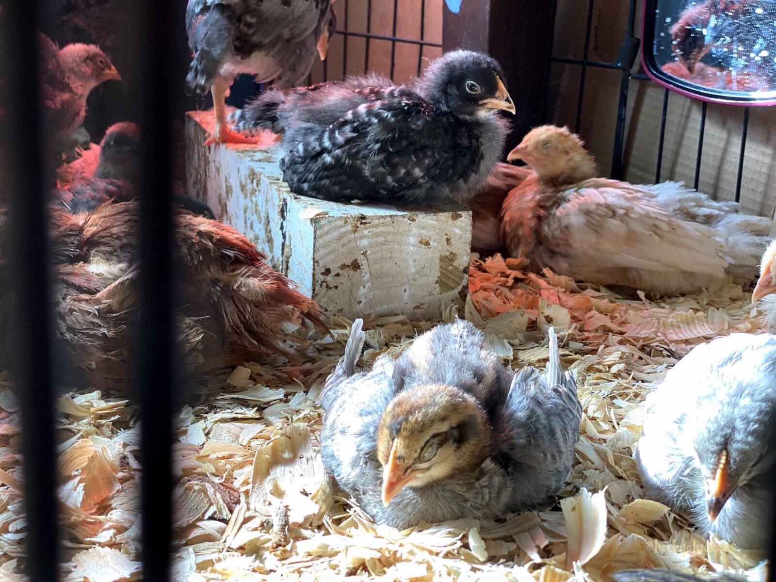 We’ve kept the red light on to keep them warm. They are now on the floor indoors, it can get a bit of cold air especially when the door opens. Our outside temps are in the teens and twenties this week, so even though they are old enough to start weaning off the light, it’s beneficial to have it there.