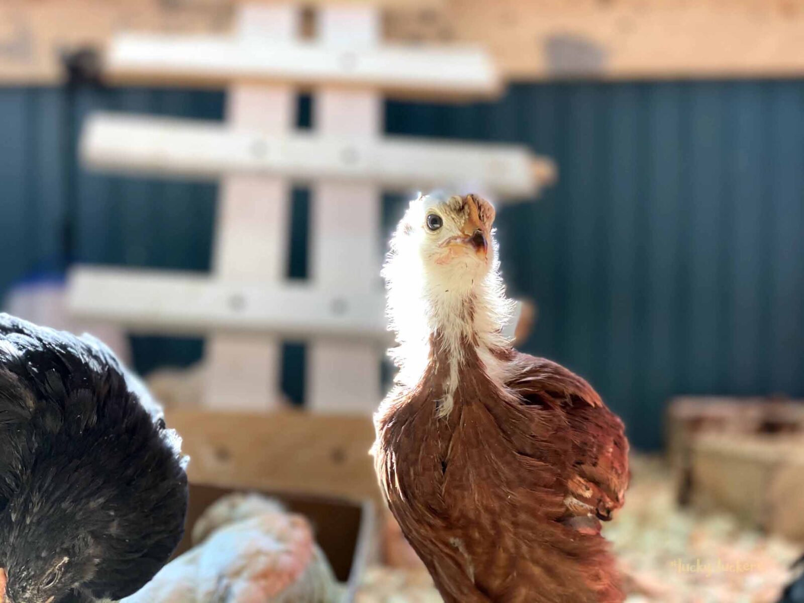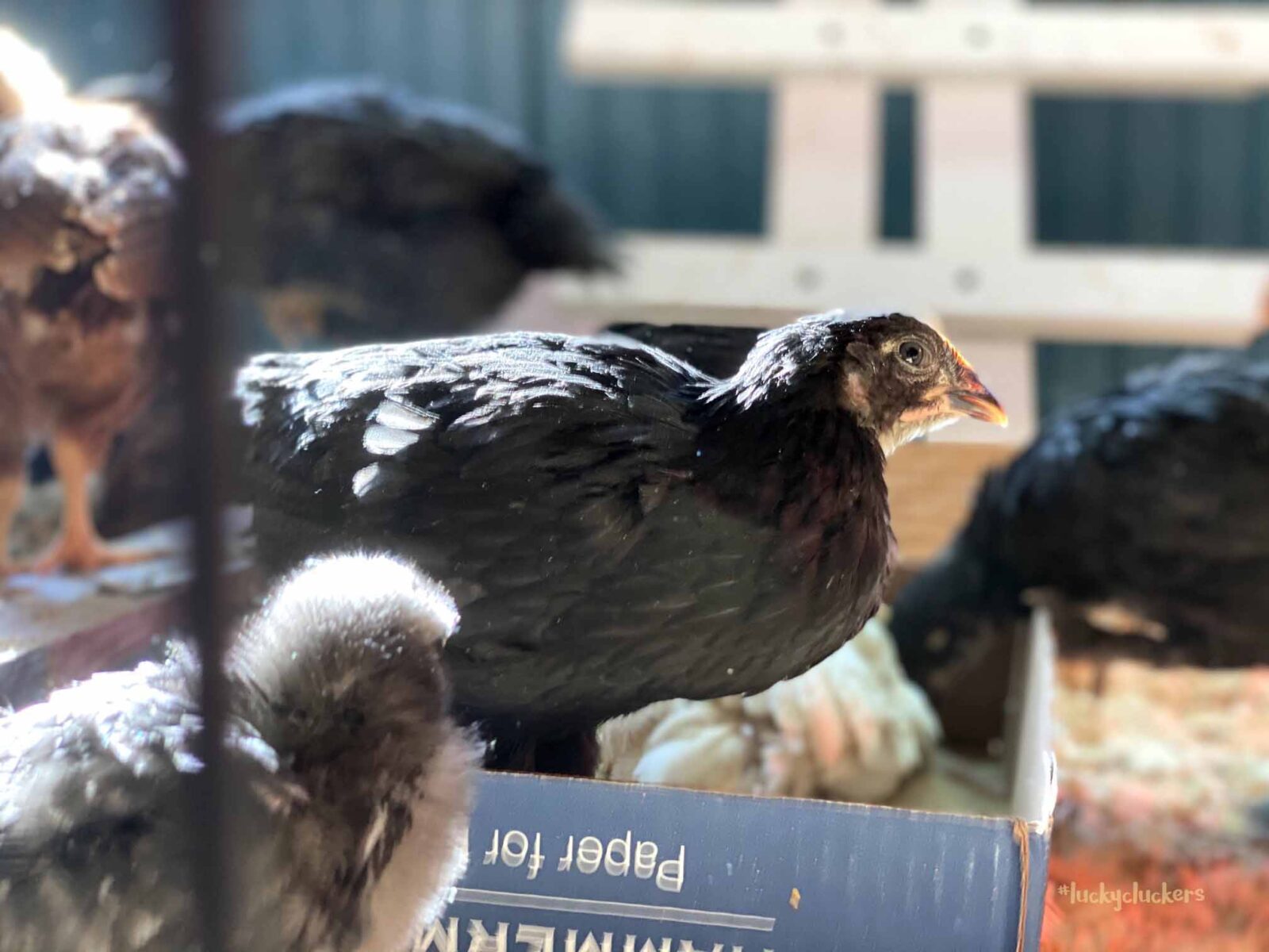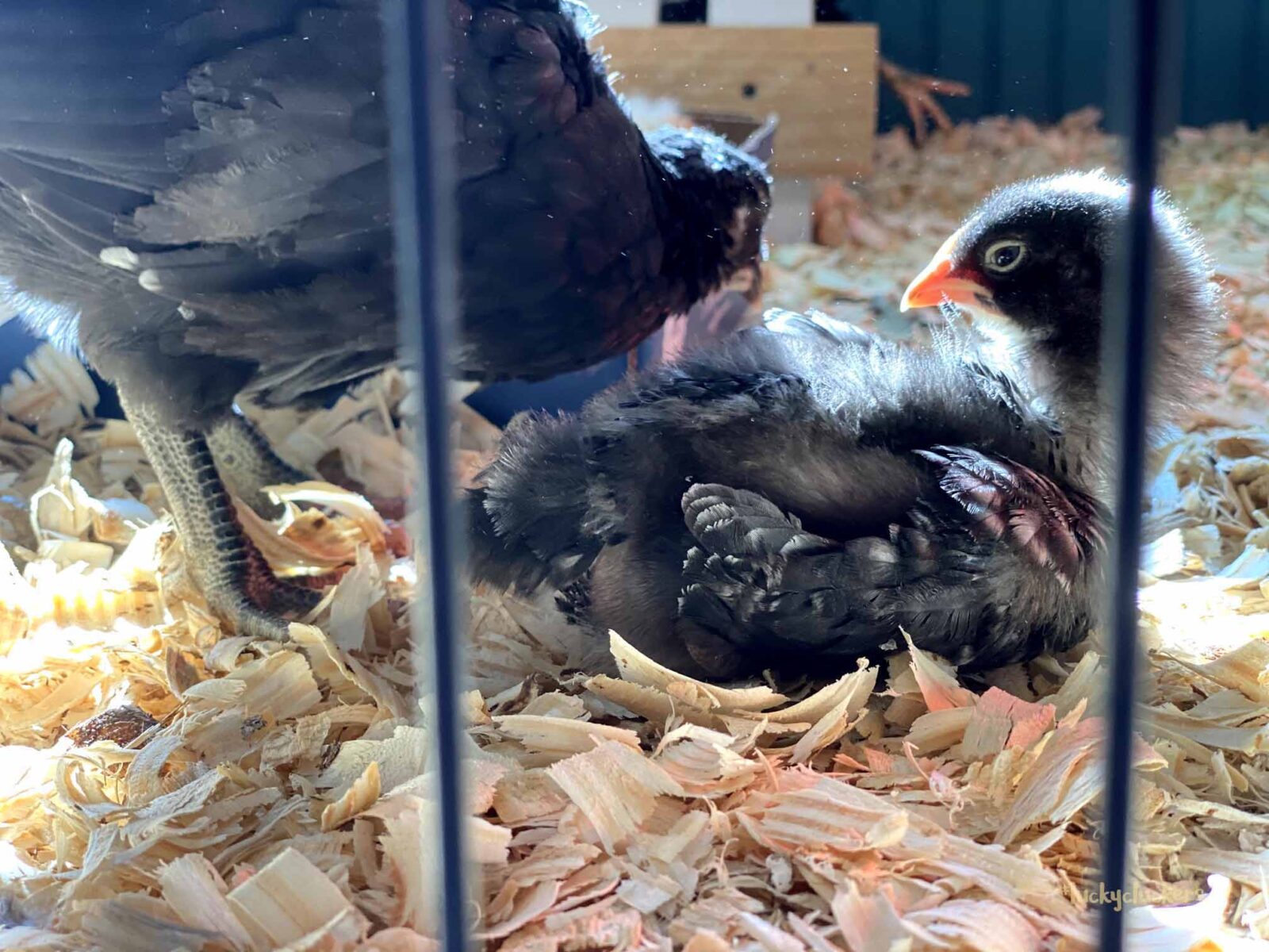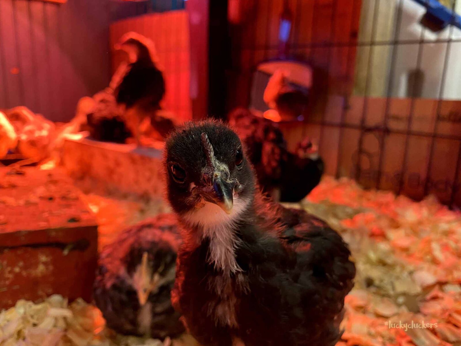 We’ve kept the red light on to keep them warm. They are now on the floor indoors, it can get a bit of cold air especially when the door opens. Our outside temps are in the teens and twenties this week, so even though they are old enough to start weaning off the light, it’s beneficial to have it there.