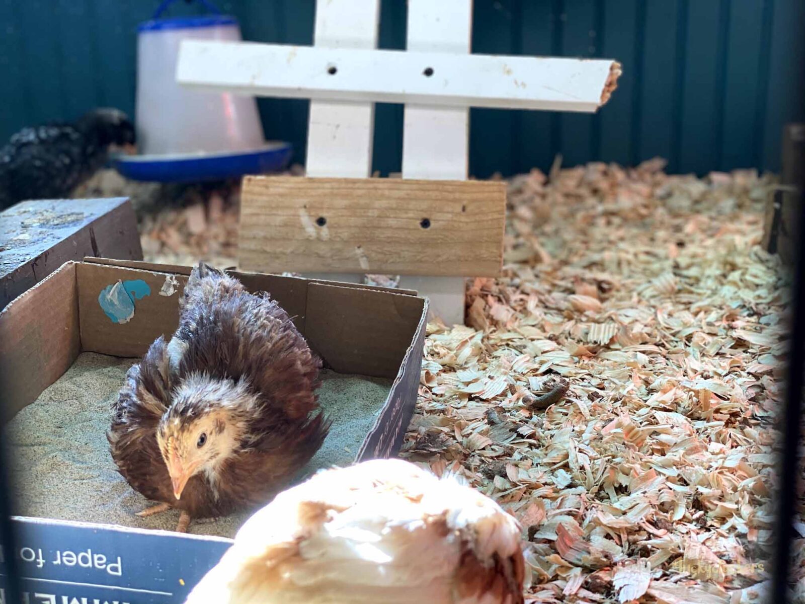This week we needed to create more space for the growing chicks. We decided to put up a larger playground area. Much harder to keep clean and change out the pine shavings, but they have a lot of room and we’ll have less issues if water spills. We also picked up the newer style of watering container. So far it’s much better than any of our previous hanging or sitting on the ground options. Much less spillage and easier to keep clean.