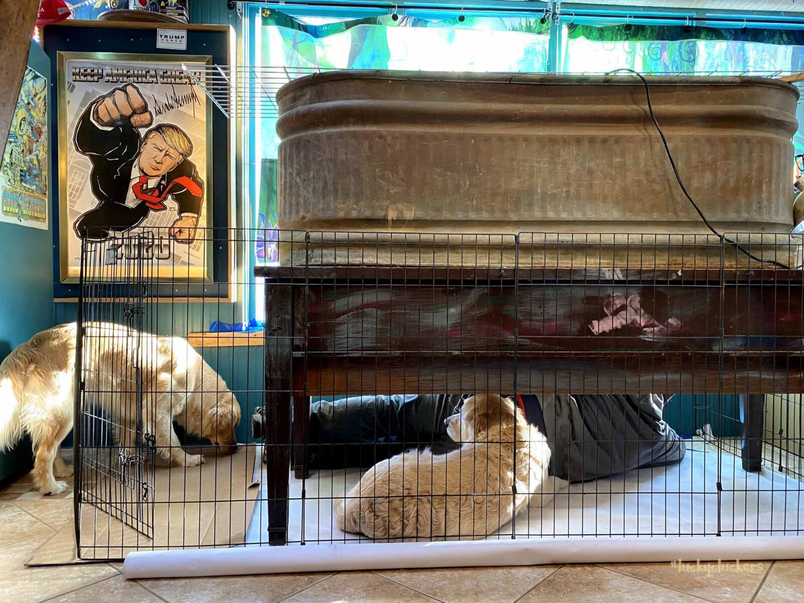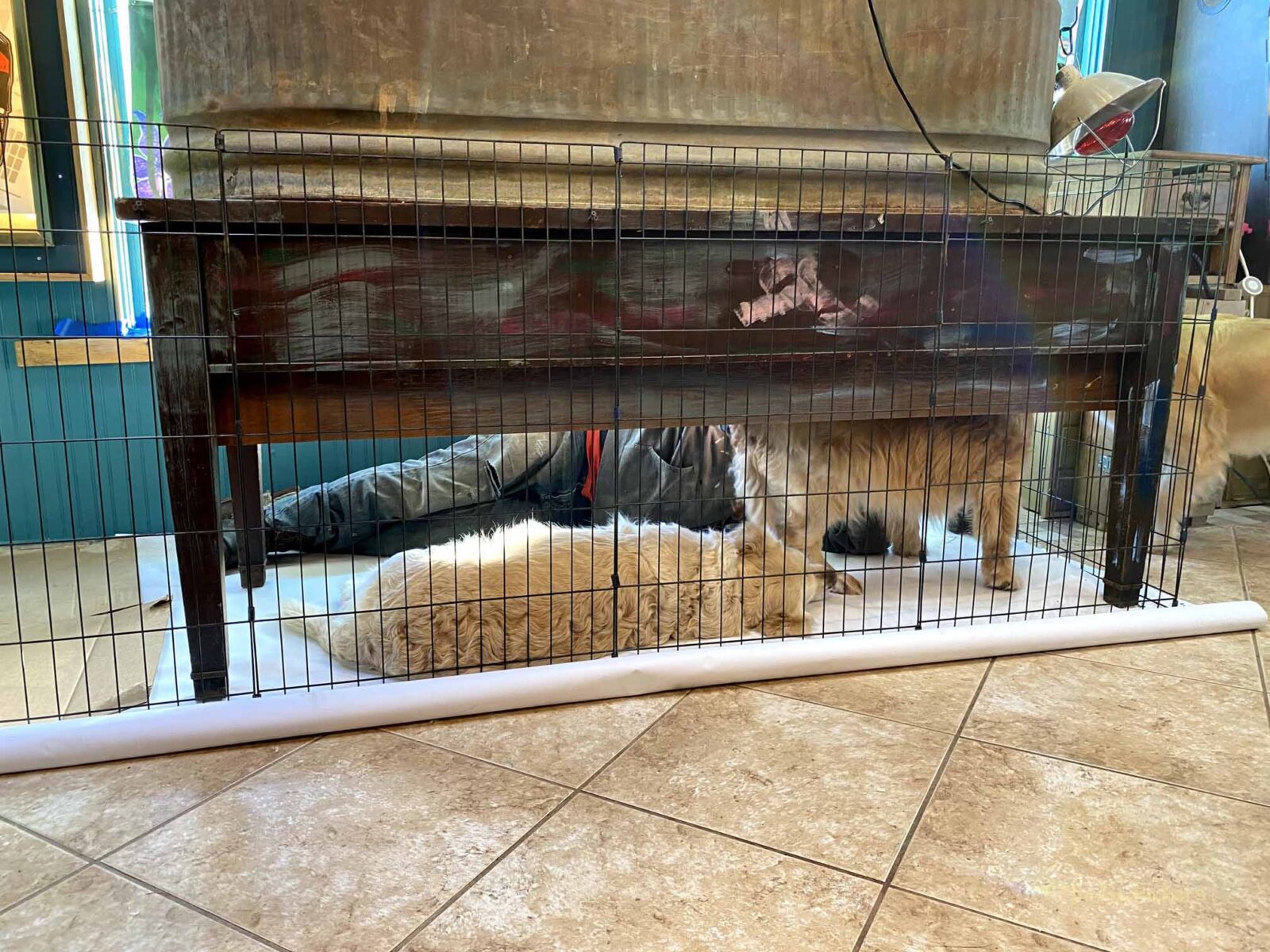 Setting up the new pen was a group activity. The goldens sure seemed to enjoy it!