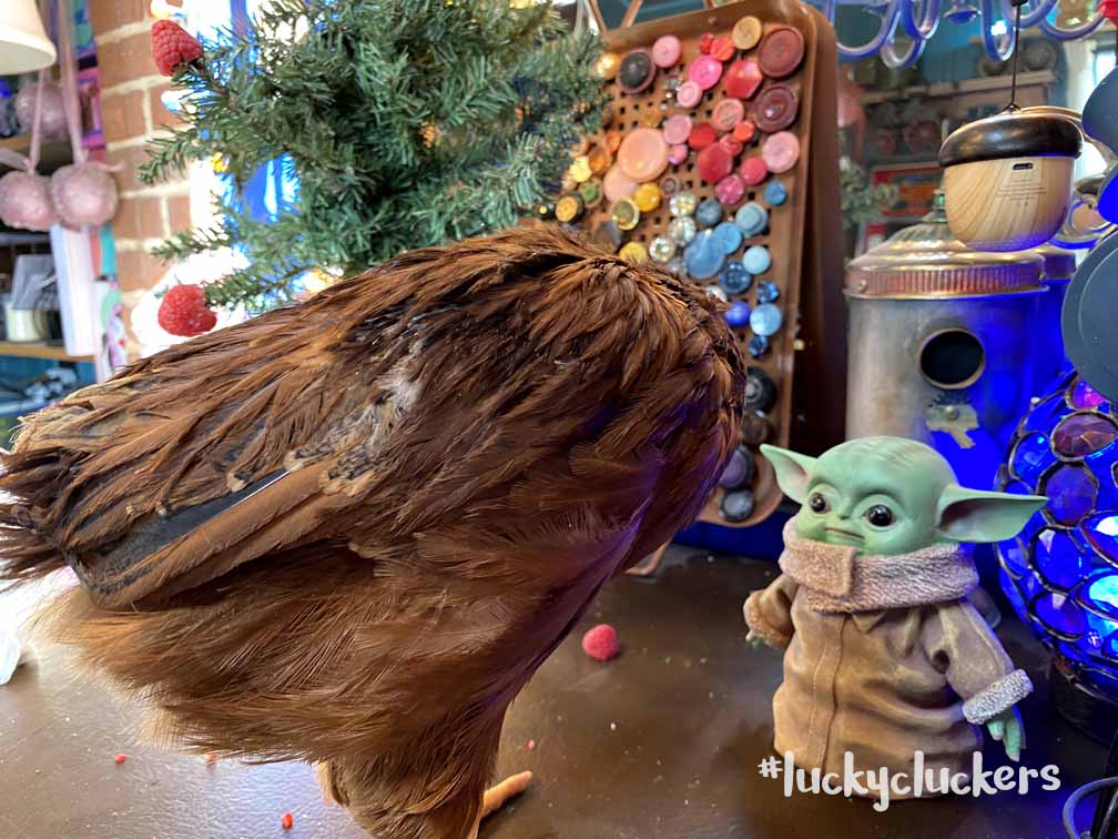 She has no trouble getting around, flying/perching, sitting, standing and fending for herself. She’s actually a bit cocky (and always has been). She is also the #rhodeislandred that had the worst looking feathers for a while. They were stiff and brittle, and very sparse. She is filling in quite nicely.