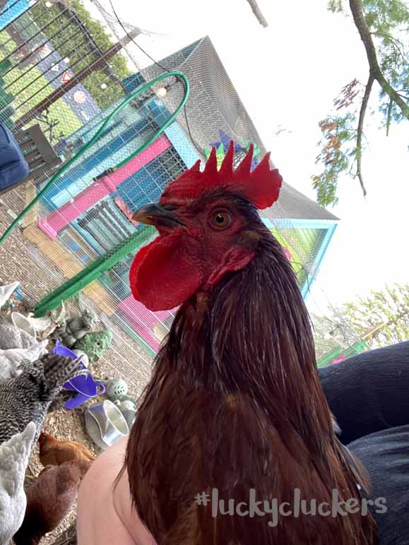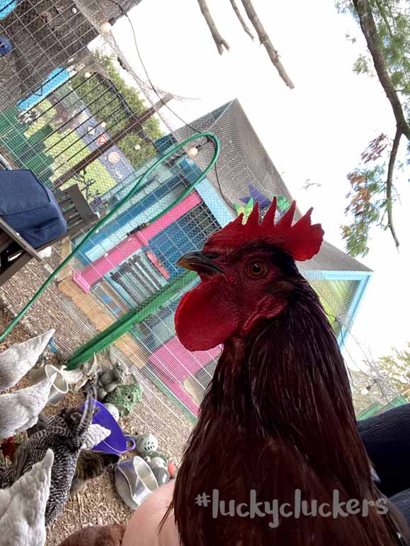 Soooo…Henrietta has the crooked leg which we’ve mentioned has not kept her/him down at all~! This past two weeks brought major redness out in his comb/wattles – that, the cock-a-doodle-doo’ing and the mounting of hens for chicken/rooster happy time has confirmed. Indeed. Henrietta is a boy. #2 in the Rooster hierarchy, with his own set of ladies and everything! Ladies we’ve seen with Henrietta include: ebitz & many isa browns, a couple sapphire gems.