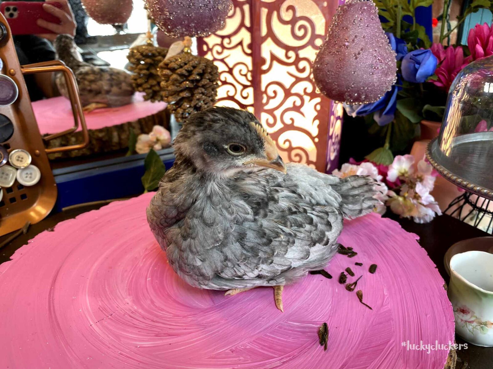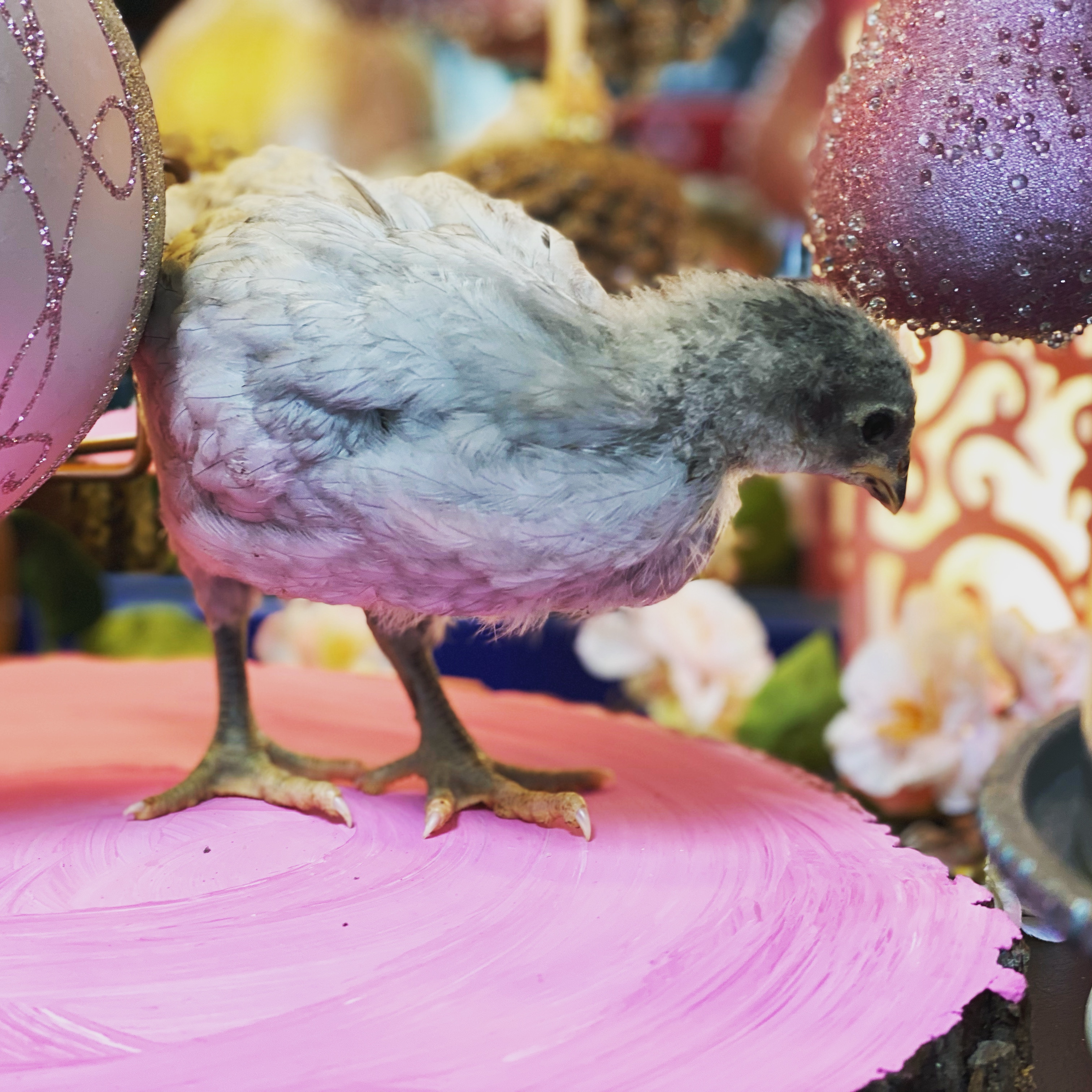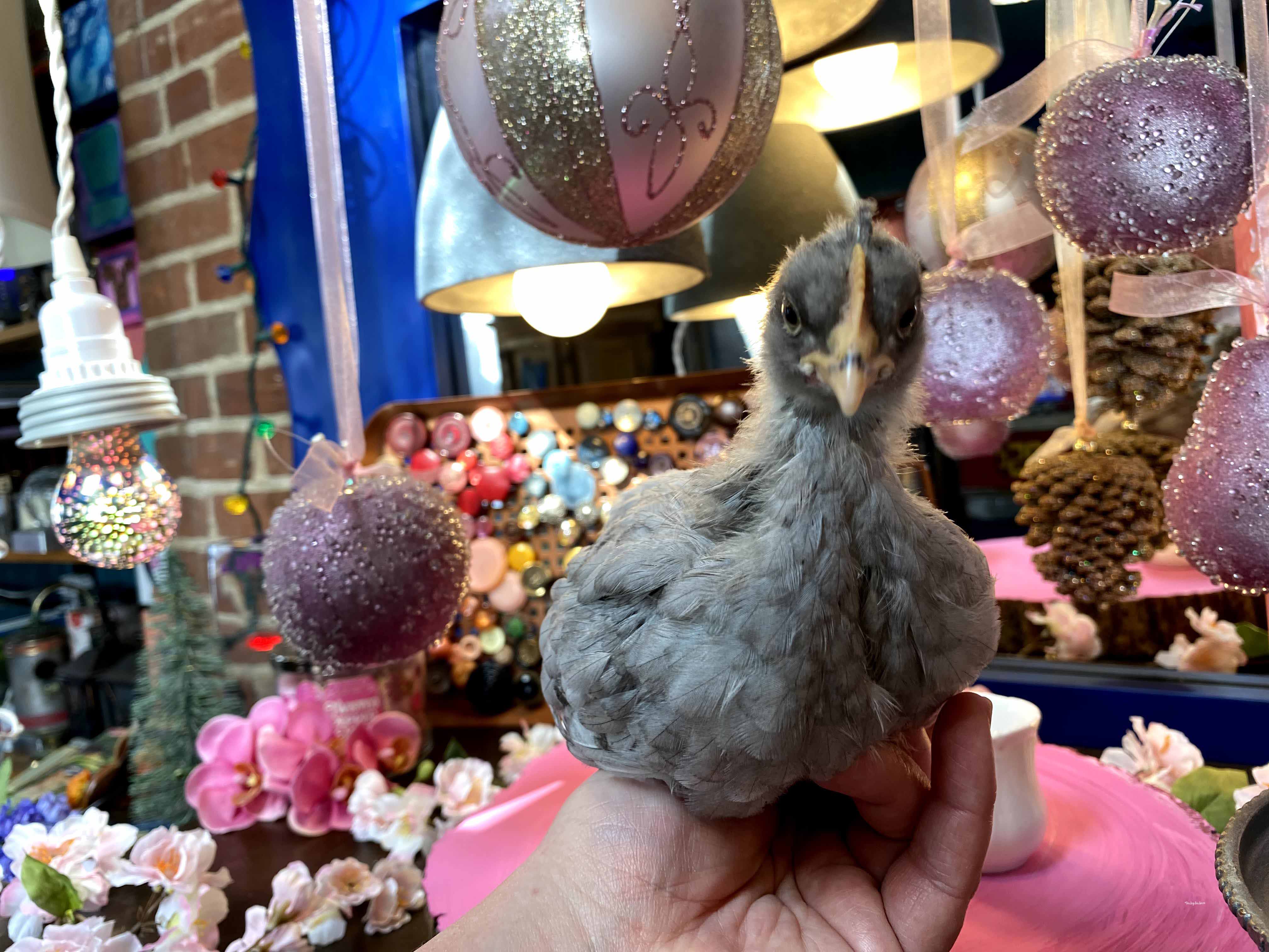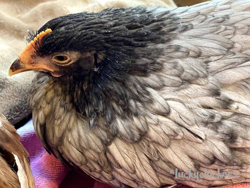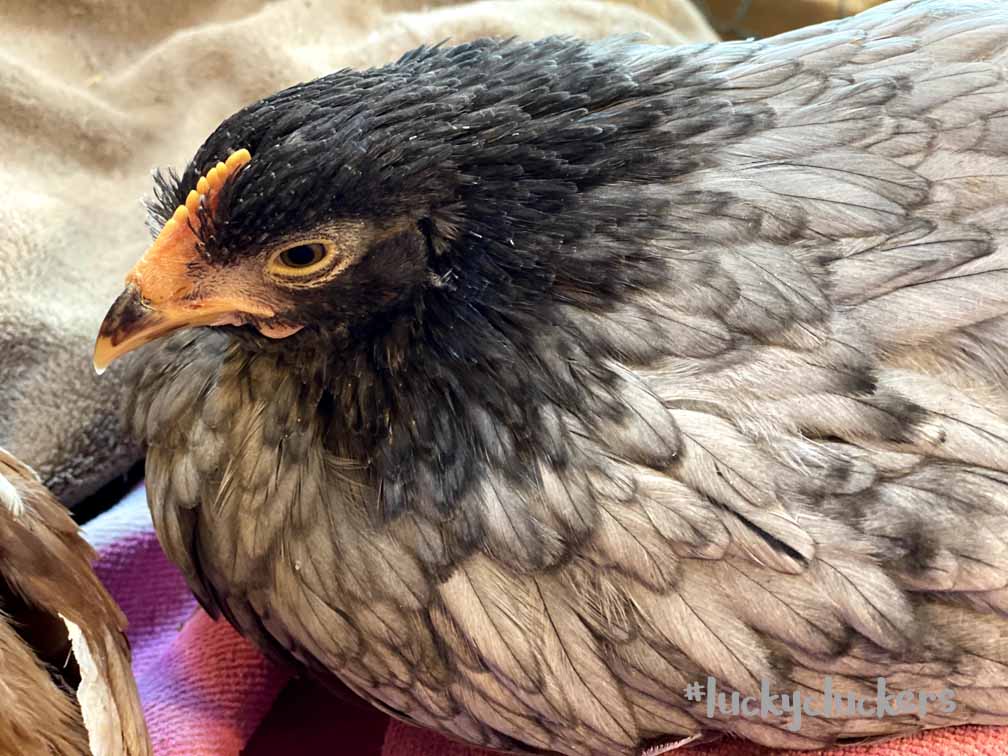 We added four sapphire gem chicks to the mix – and they are all various shades of grey referred to in the chicken world as blue or lavender.
