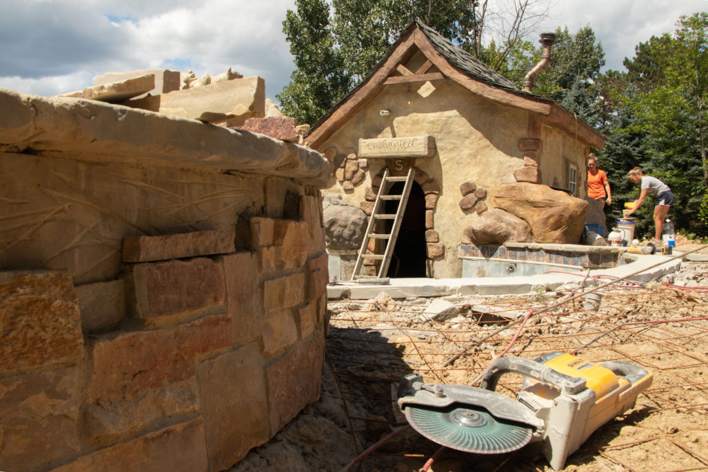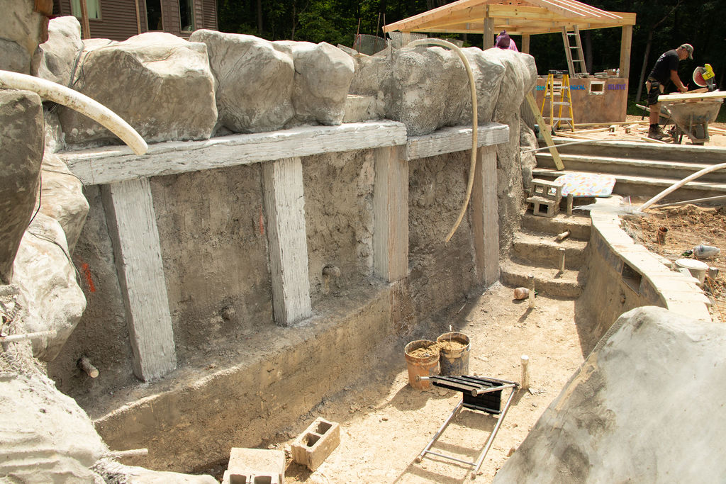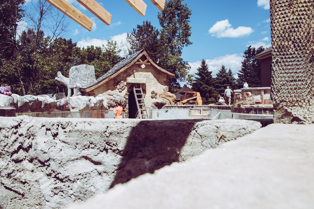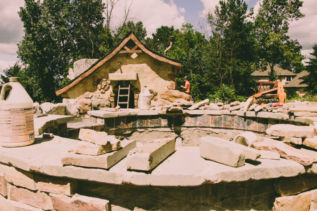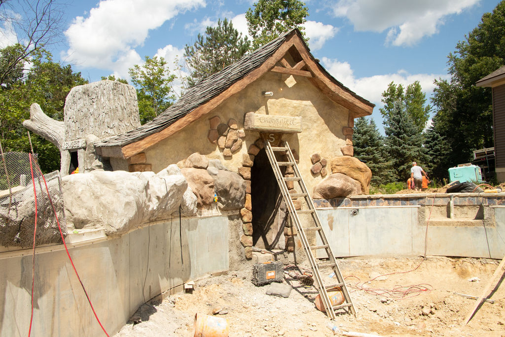 Our pools at Legendary Escapes take on a life of their own. We have a general plan to start, and once our team is on site and they are adding the steel/concrete and their artistry into the mix, the pools begin to almost shape themselves – and show our team what needs to be added to make the spaces magical. This one started as the “mystery mine” and has entered the official status of “Once Upon a Time” which has to do with all things wonderful, whimsical, and enchanting.