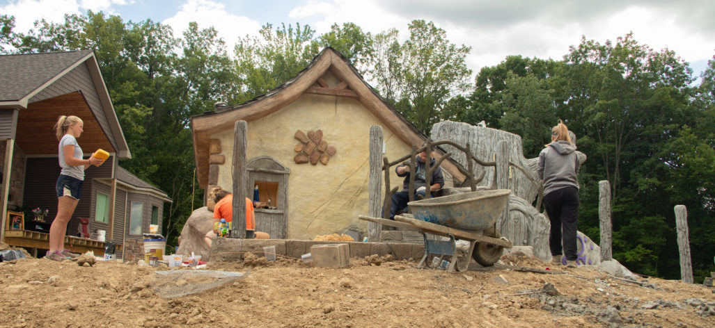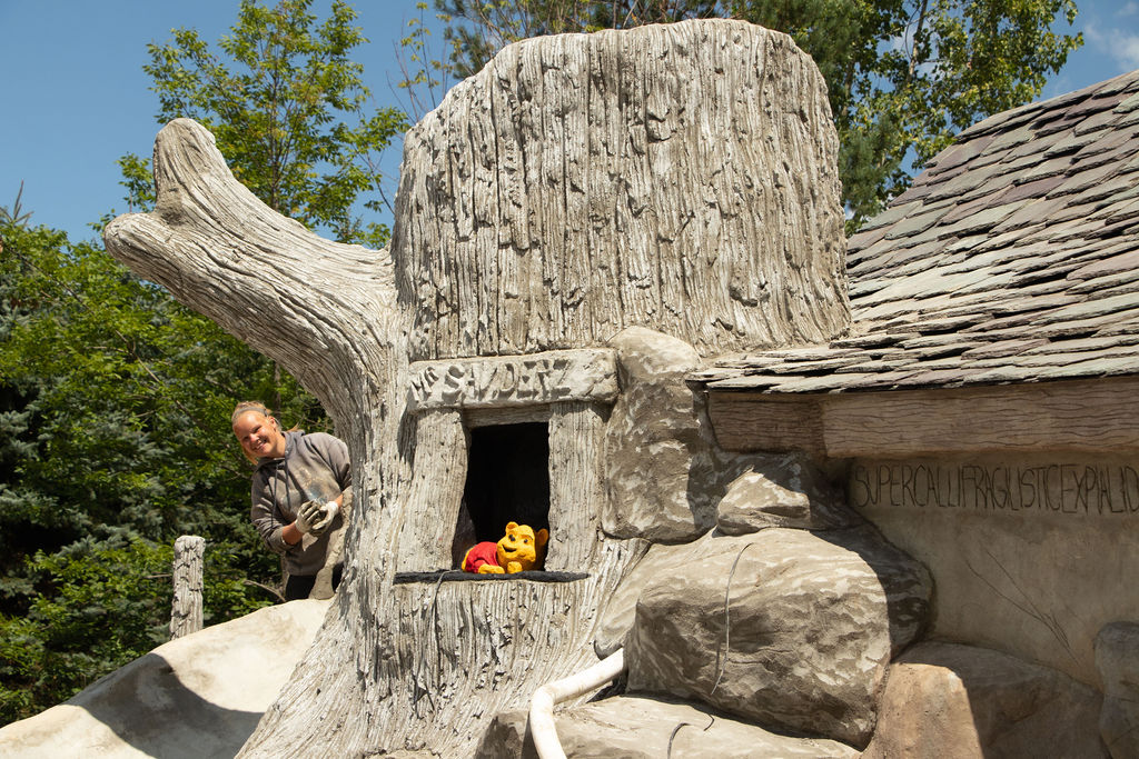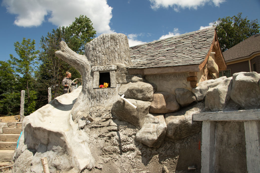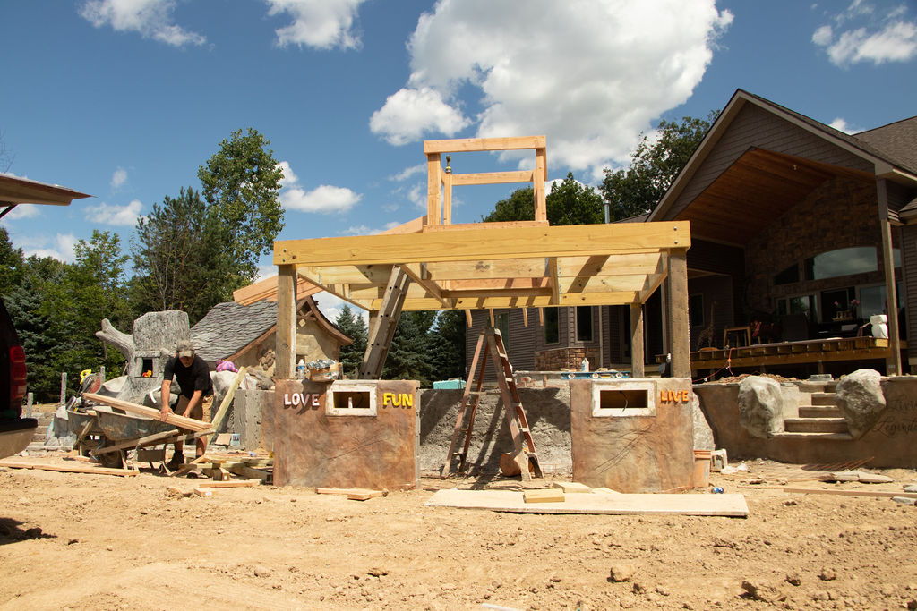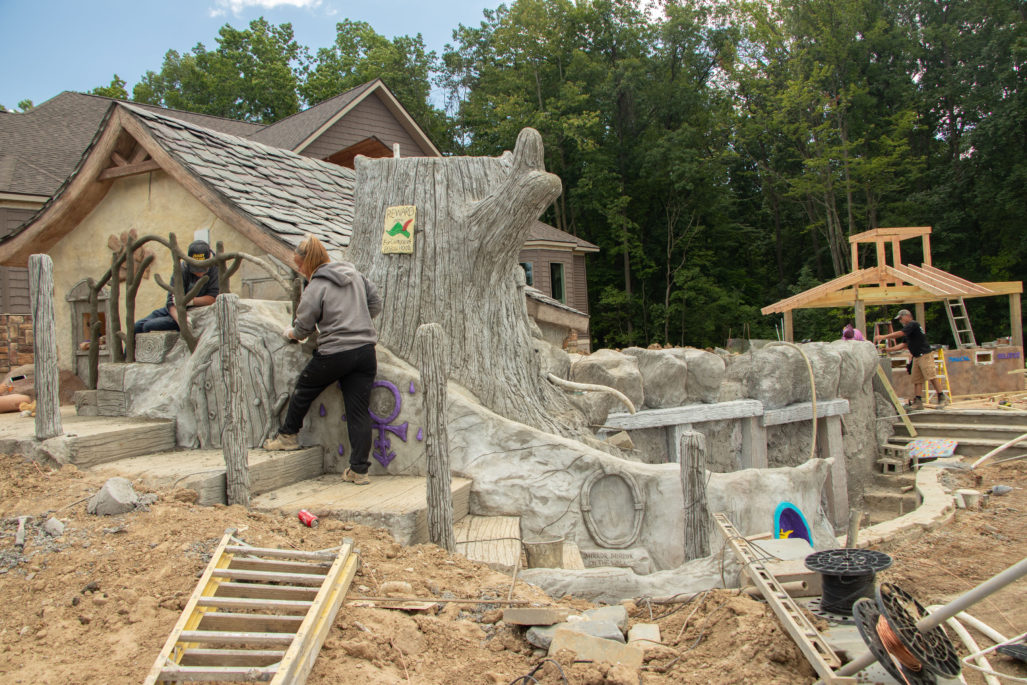 Our pools at Legendary Escapes take on a life of their own. We have a general plan to start, and once our team is on site and they are adding the steel/concrete and their artistry into the mix, the pools begin to almost shape themselves – and show our team what needs to be added to make the spaces magical. This one started as the “mystery mine” and has entered the official status of “Once Upon a Time” which has to do with all things wonderful, whimsical, and enchanting.