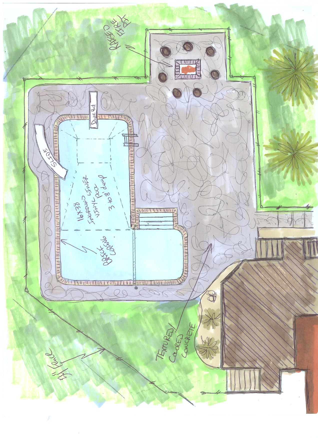 Sometimes it takes a few rounds of drawings to create a backyard environment that meets the needs of the layout of the back yard, and satisfies the wants of the homeowner. Here are a few drawings that were proposed to the homeowners in South Lyon for our next pool project, including the final design.