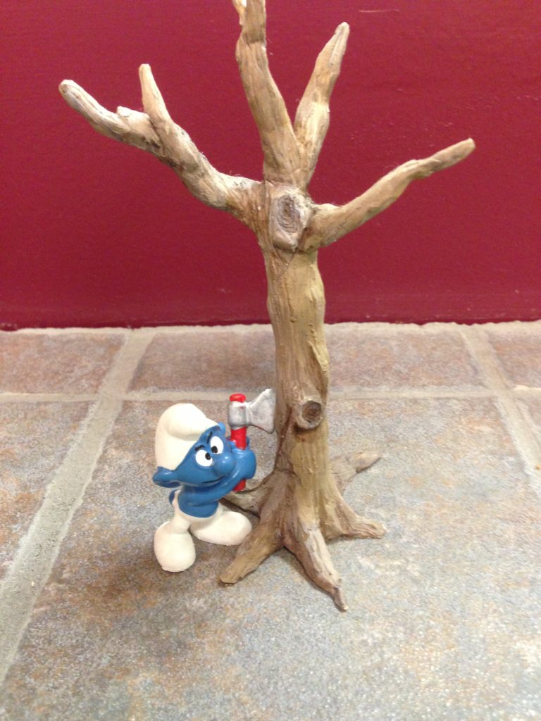 One day we started talking about Smurfs. They are little blue men (and one woman) who live in a village where they go about doing Smurf things in their Smurf way. One thing led to another and our office collection of Smurf figures and merch. went from 0 {zero} to 100’s {Hundreds} super quickly. Why? Great question, other than when we are “into” something, we tend to go all the way.
