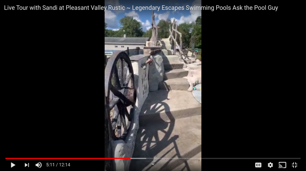 Join Sandi of Legendary Escapes for a live tour of this amazing Pleasant Valley Rustic swimming pool!