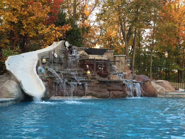 Our creative team instantly knew the direction the project needed to go, and the vision for a Steampunk Caribbean waterfall was born. From that point forward, the pool took on a life of its own, merging tropical inspiration with intricate, industrial artistry.
