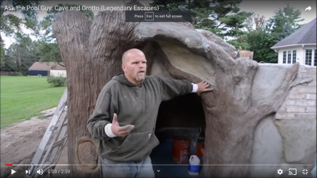 Our customers wanted a waterfall and a rock slide, but not necessarily to swim-in grotto. They wanted to make sure that they could always see their young kids when they are in the pool. In this video, Al shows what he and his crew built under the water features.