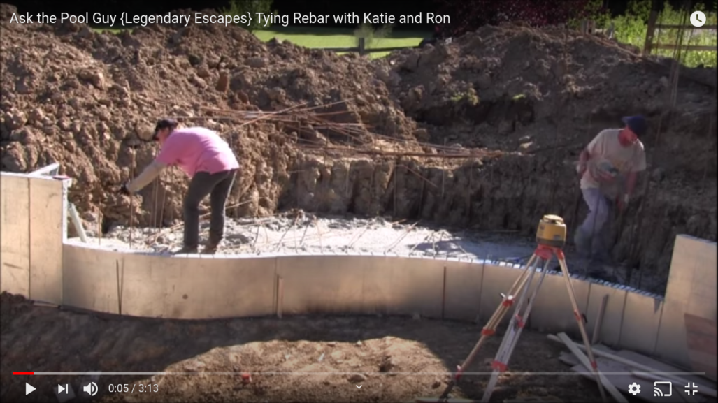 Tying Rebar – How It’s Done Ask the Pool Guy July 28, 2020 Posted in Hybrid Swimming Pools, LivingLegendary>TV, Projects Share: TwitterFacebookPinterestLinkedin Here is a quickie of our Legendary Escapes team tying rebar. Katie and Ron are doing a great job! Author: Ask the Pool Guy